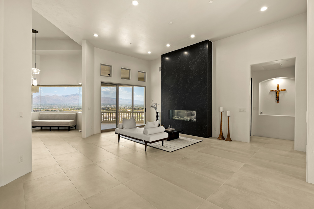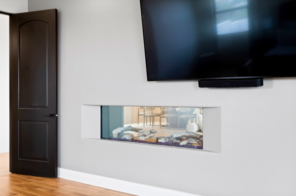 We built a brand-new fireplace to anchor the living room, opened up a large archway to improve flow, and replaced outdated features with streamlined, modern details. New flooring and lighting throughout brought the entire home together.