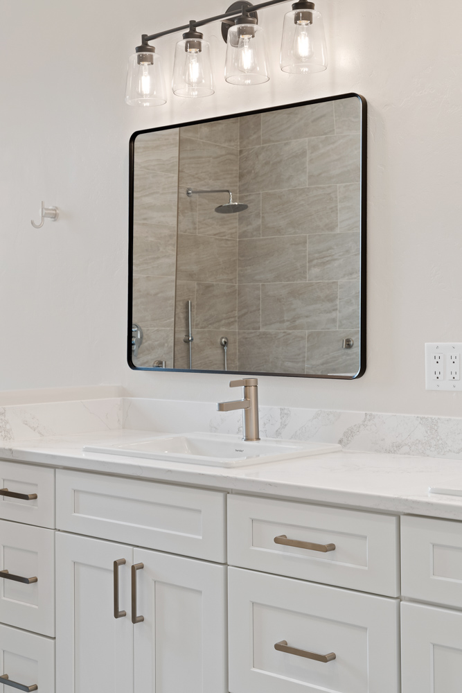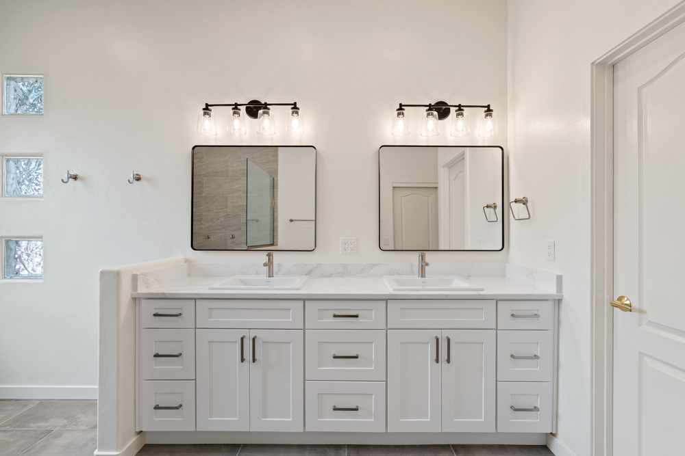 One of the biggest upgrades in this bathroom remodel in Tucson Arizona is the lighting design: