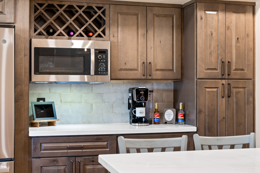 This Beloved Built kitchen remodel breathes new life into a once-dated space, blending modern style with a touch of rustic warmth. At the heart of the transformation is a large, expansive island that serves as both a functional workspace and a gathering spot for family and friends. The rustic, yet modern cabinetry exudes a sophisticated yet earthy charm, with a subtle rustic finish that complements the updated design.